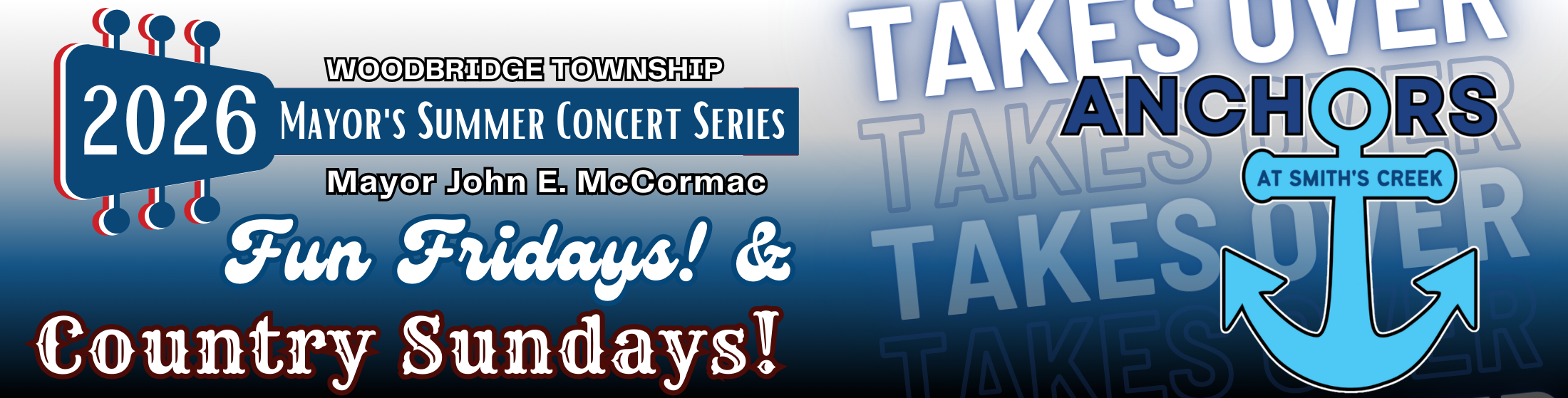 Anchors Tiki Bar is thrilled to host the Mayor’s Summer Concert Series Fun Fridays & Country Sundays! Please remember outside food and drink will NOT be permitted. Thanks for your cooperation and understanding! Here’s to a summer of Fun Friday nights together!